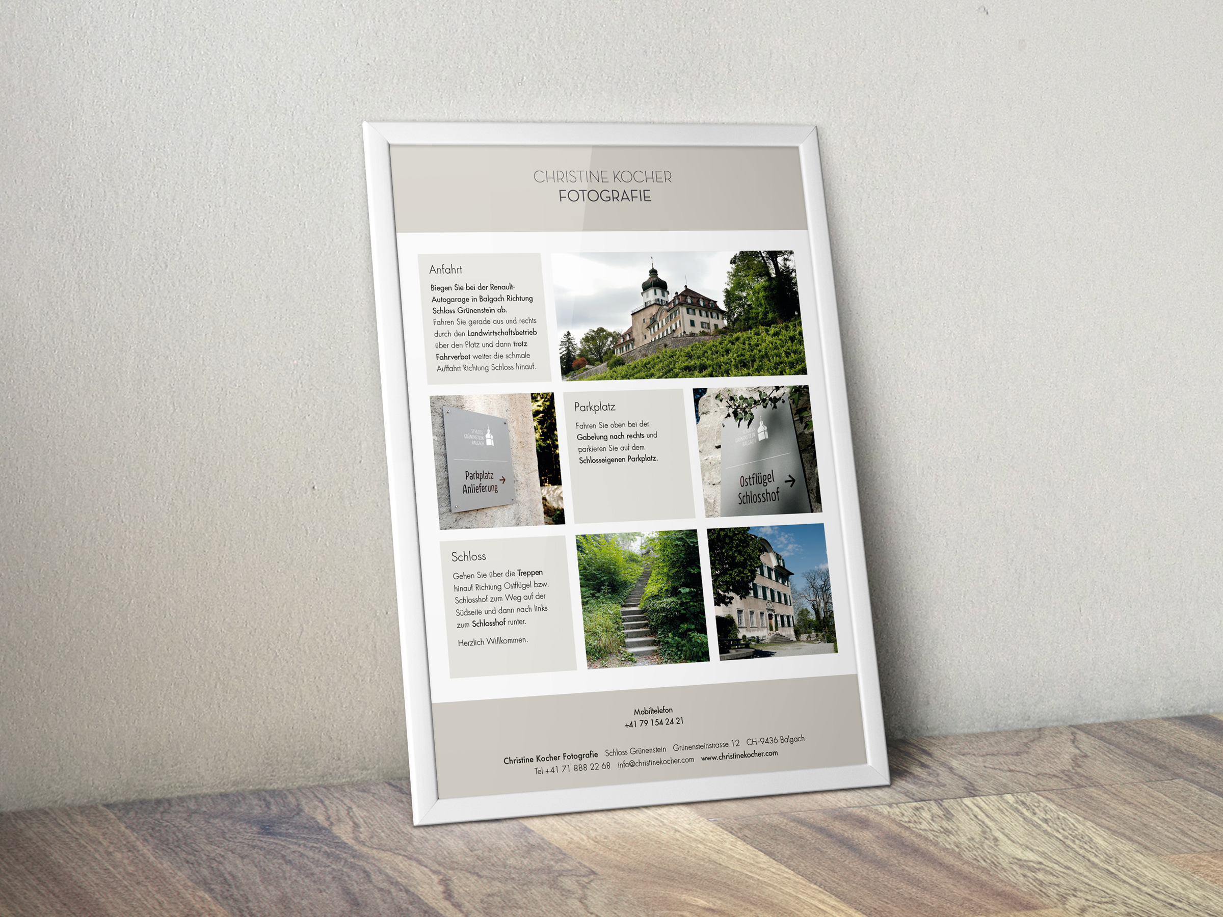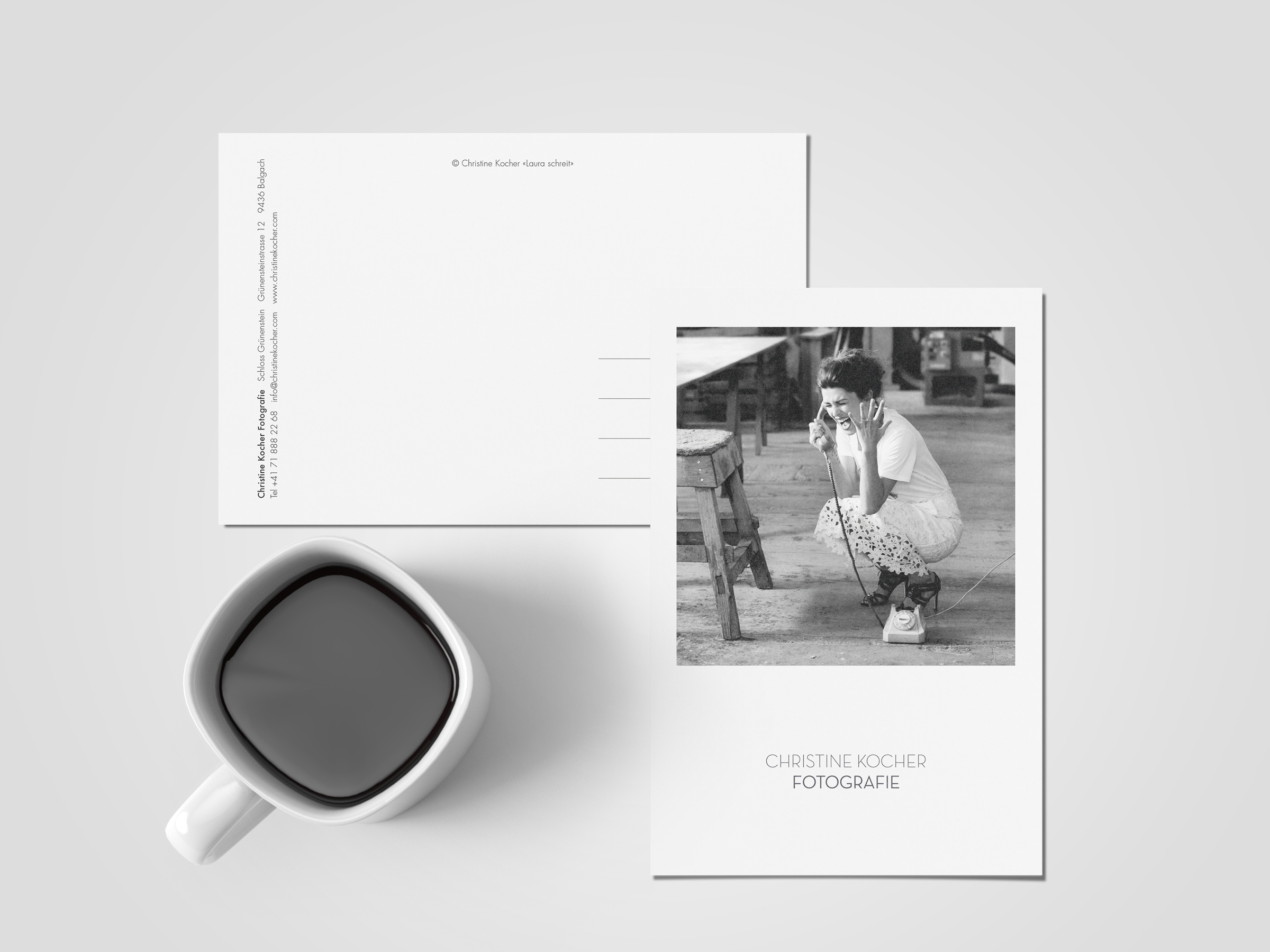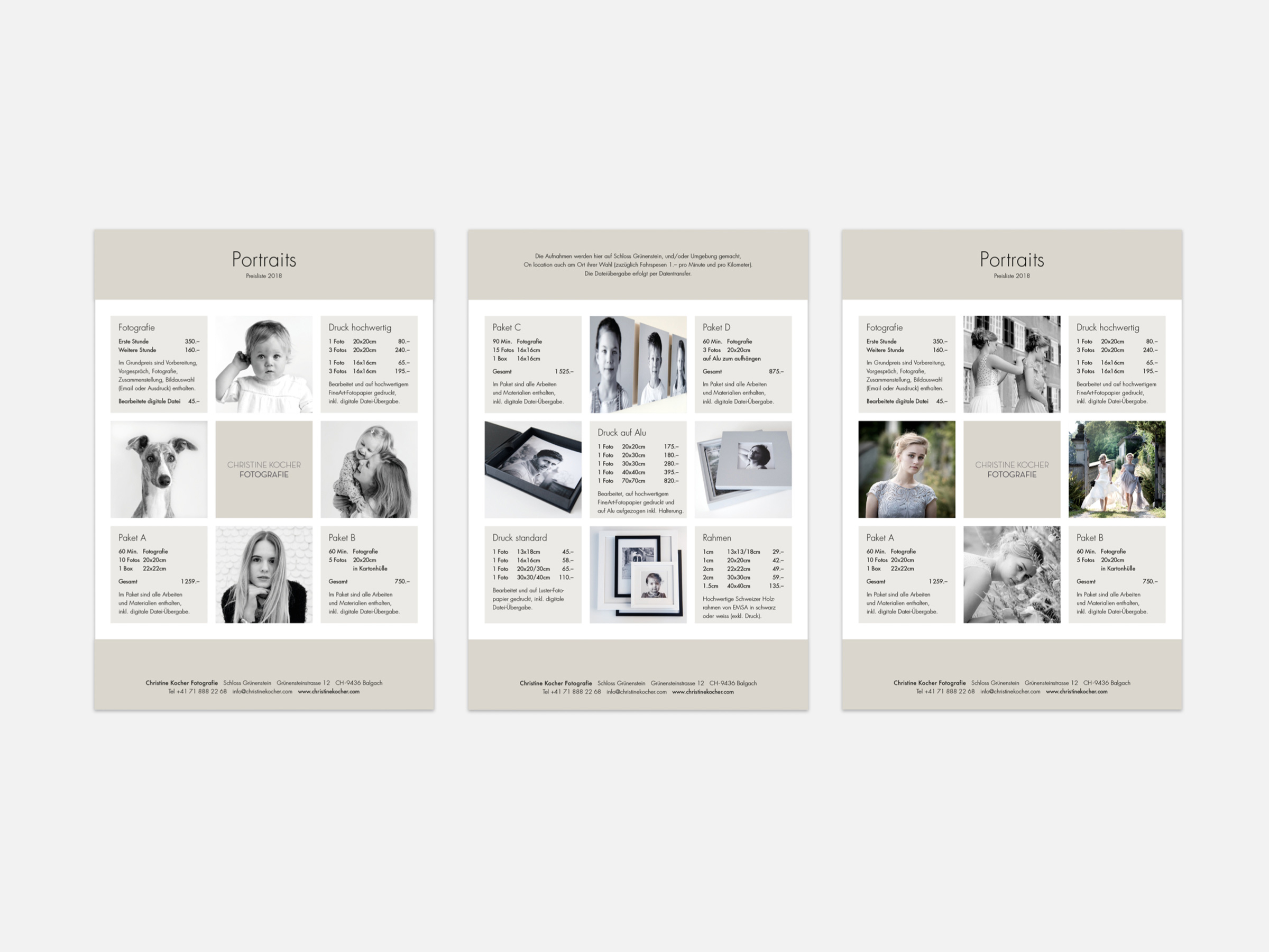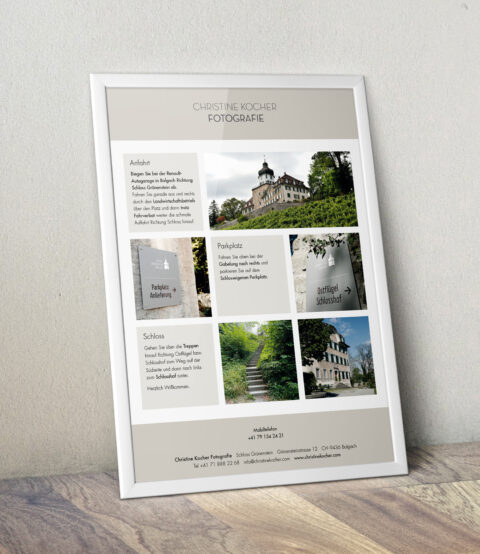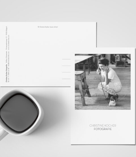 Christine Kocher Fotografie Präsentationsdokumente, Preislisten, Anfahrtspläne und Postkarten. KundeChristine Kocher FotografieJahr2019Arbeiten