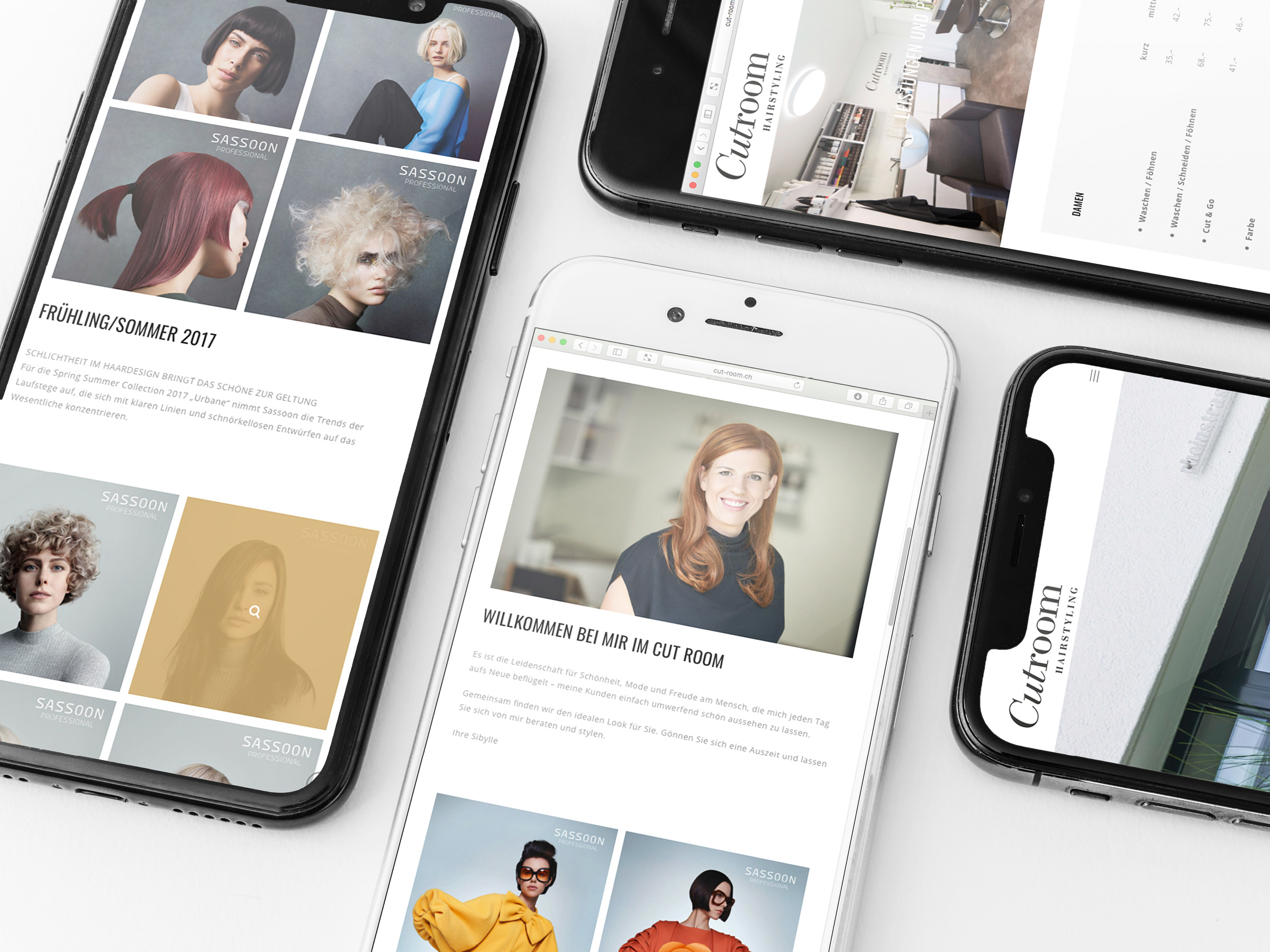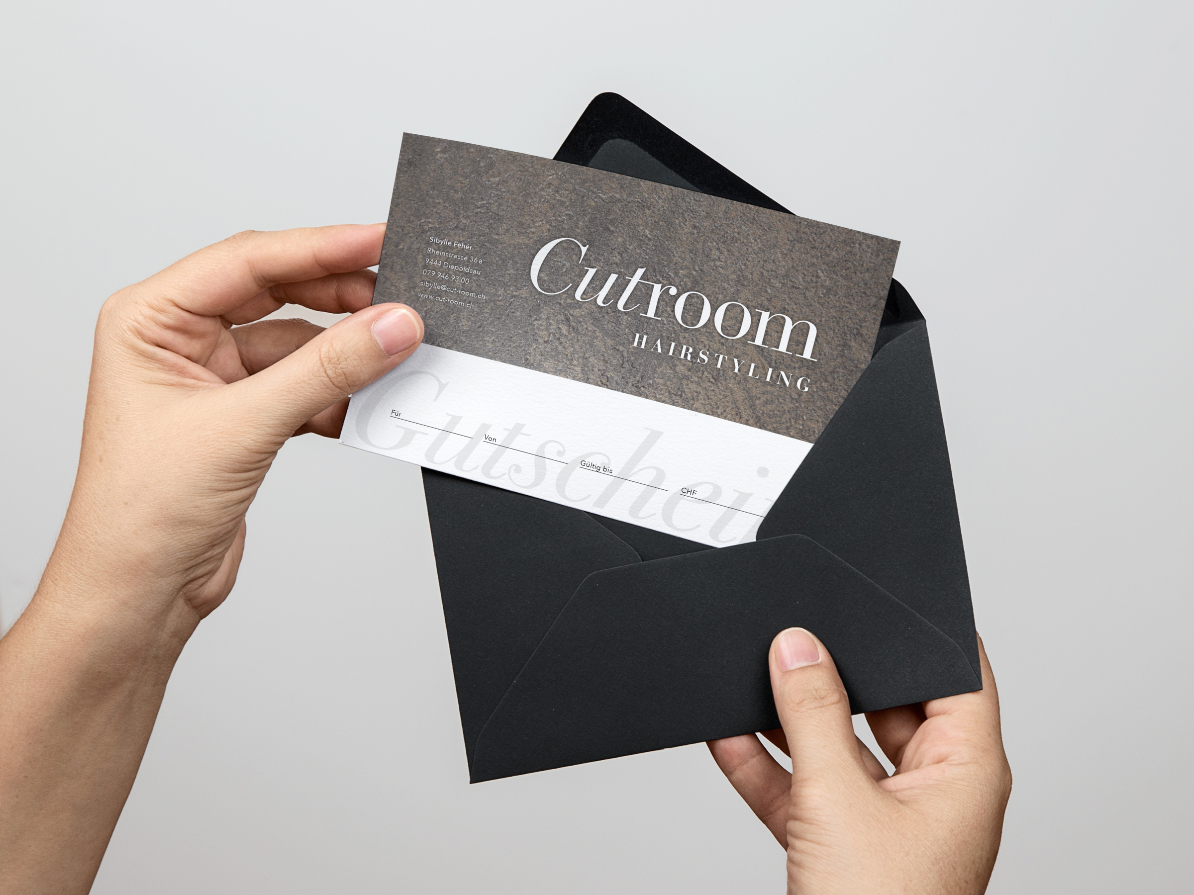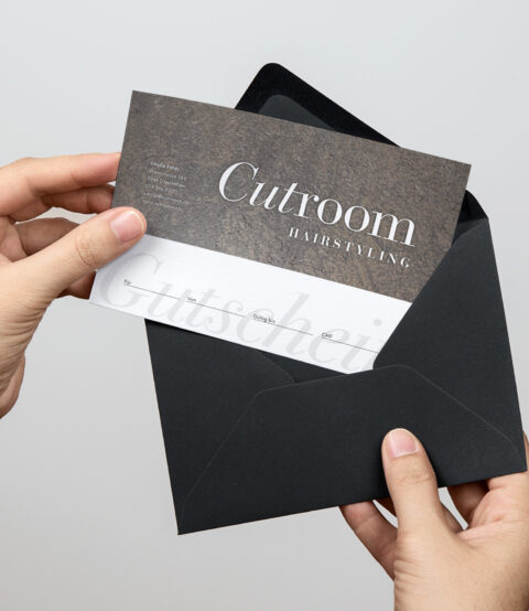 Cutroom Hairstyling Logo, Webseite, Geschäftsdrucksachen, Gutschein und Beschriftungen. KundeCutroom HairstylingJahr2019ArbeitenFoto, Video und 3D-Animation, Web und Apps