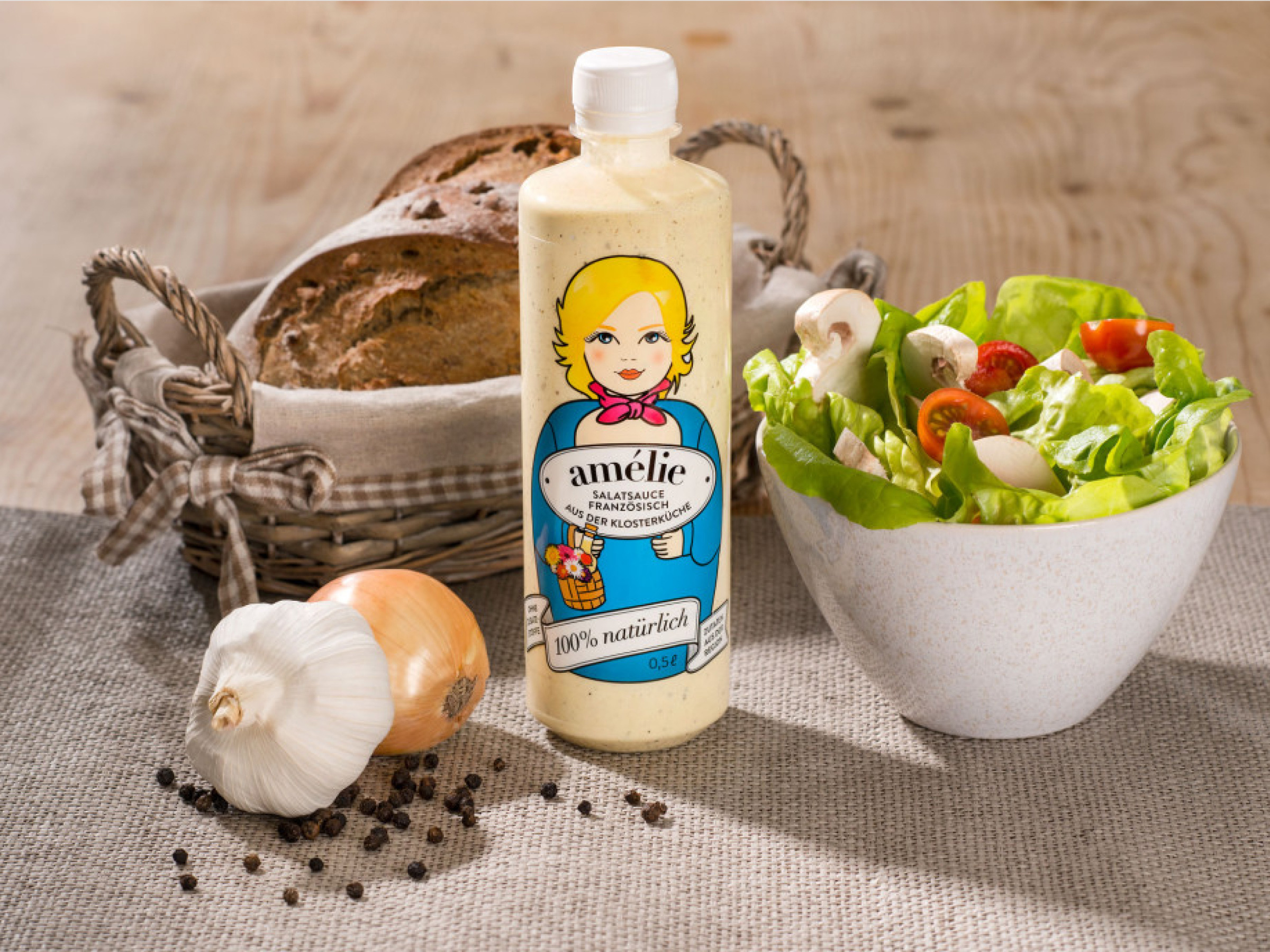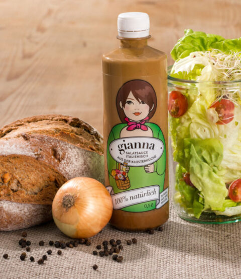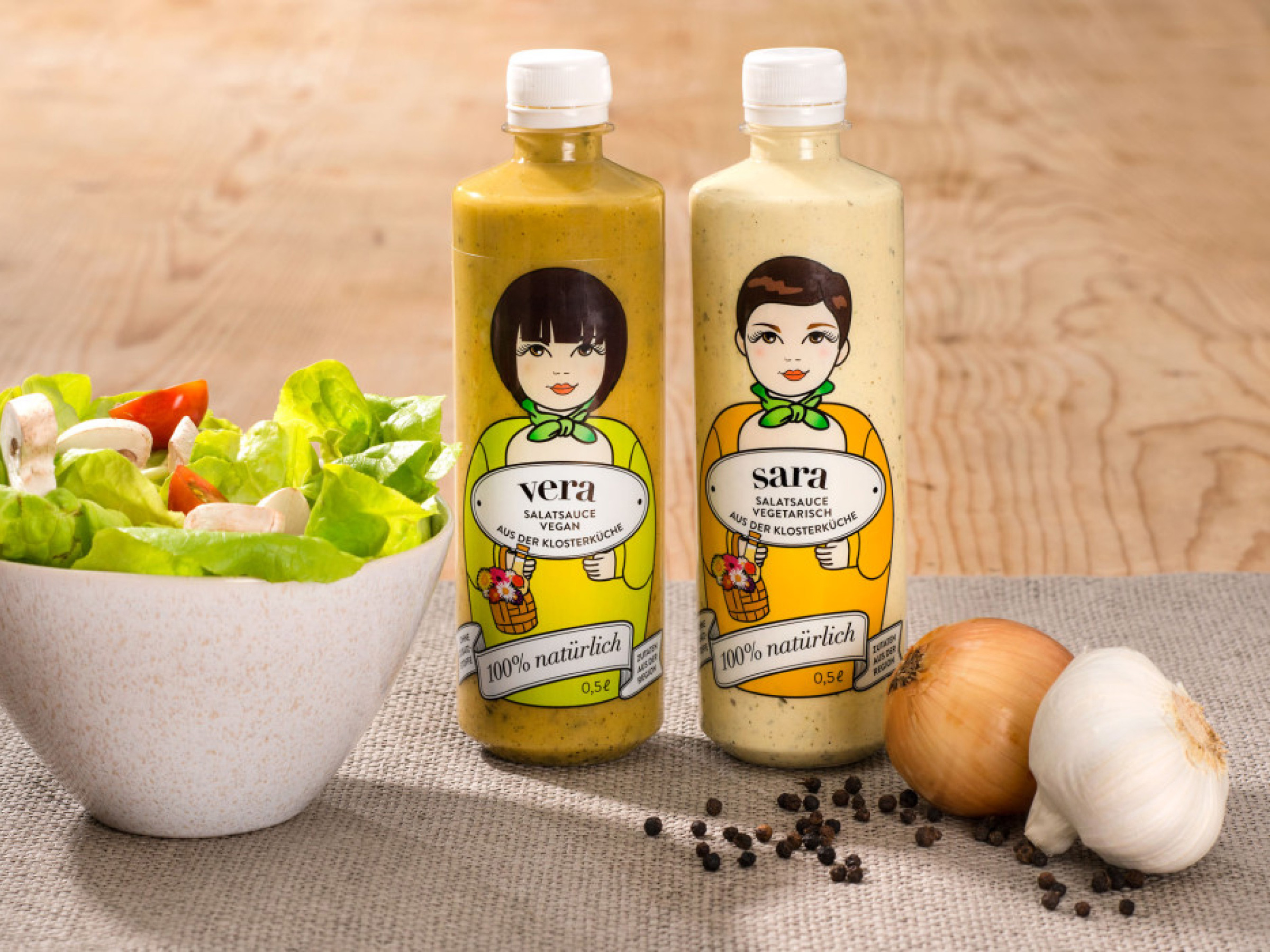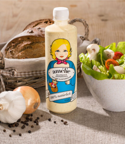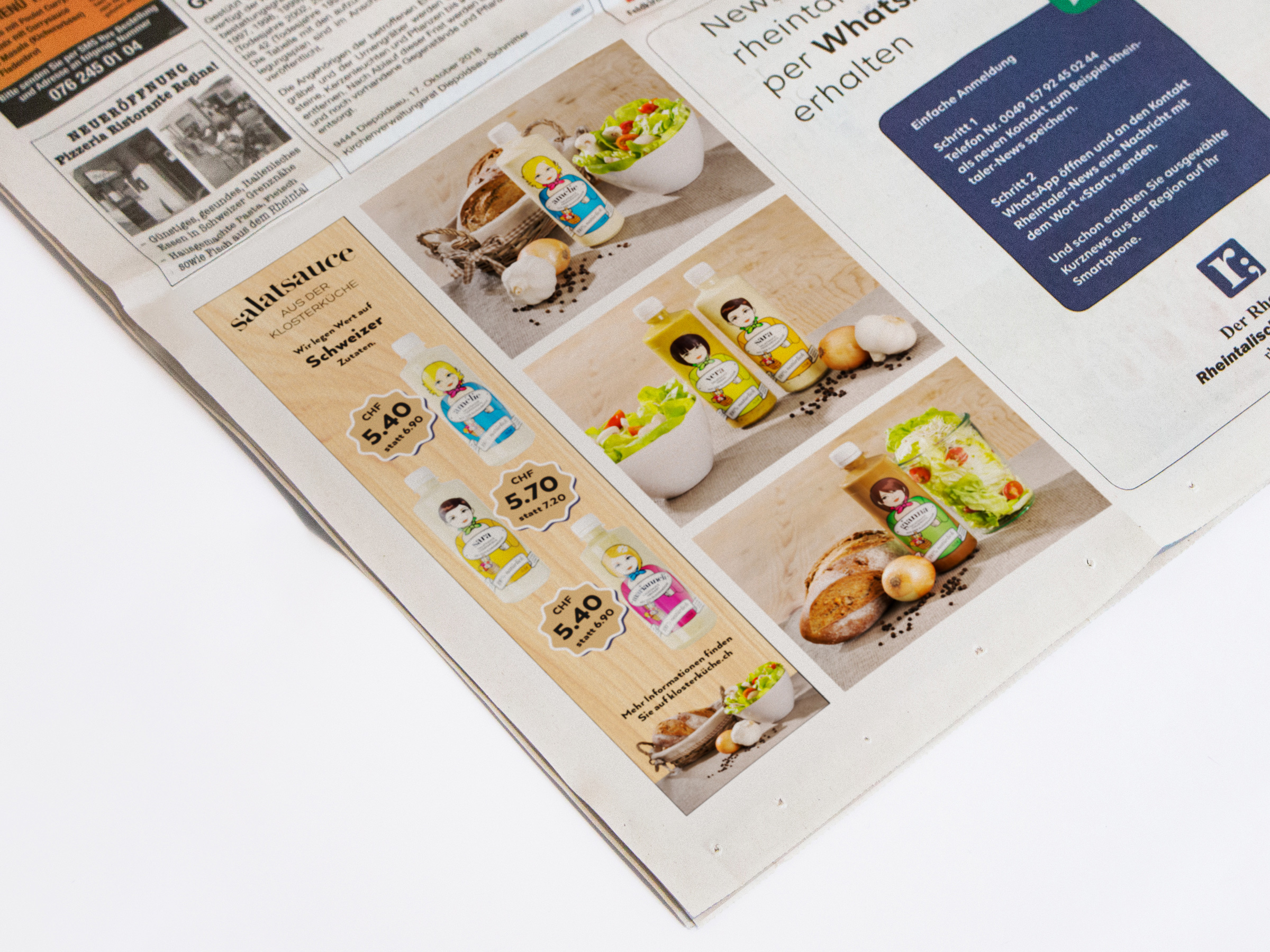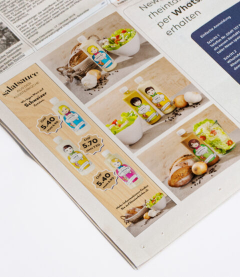 Inserat und Salatsaucenetikette.