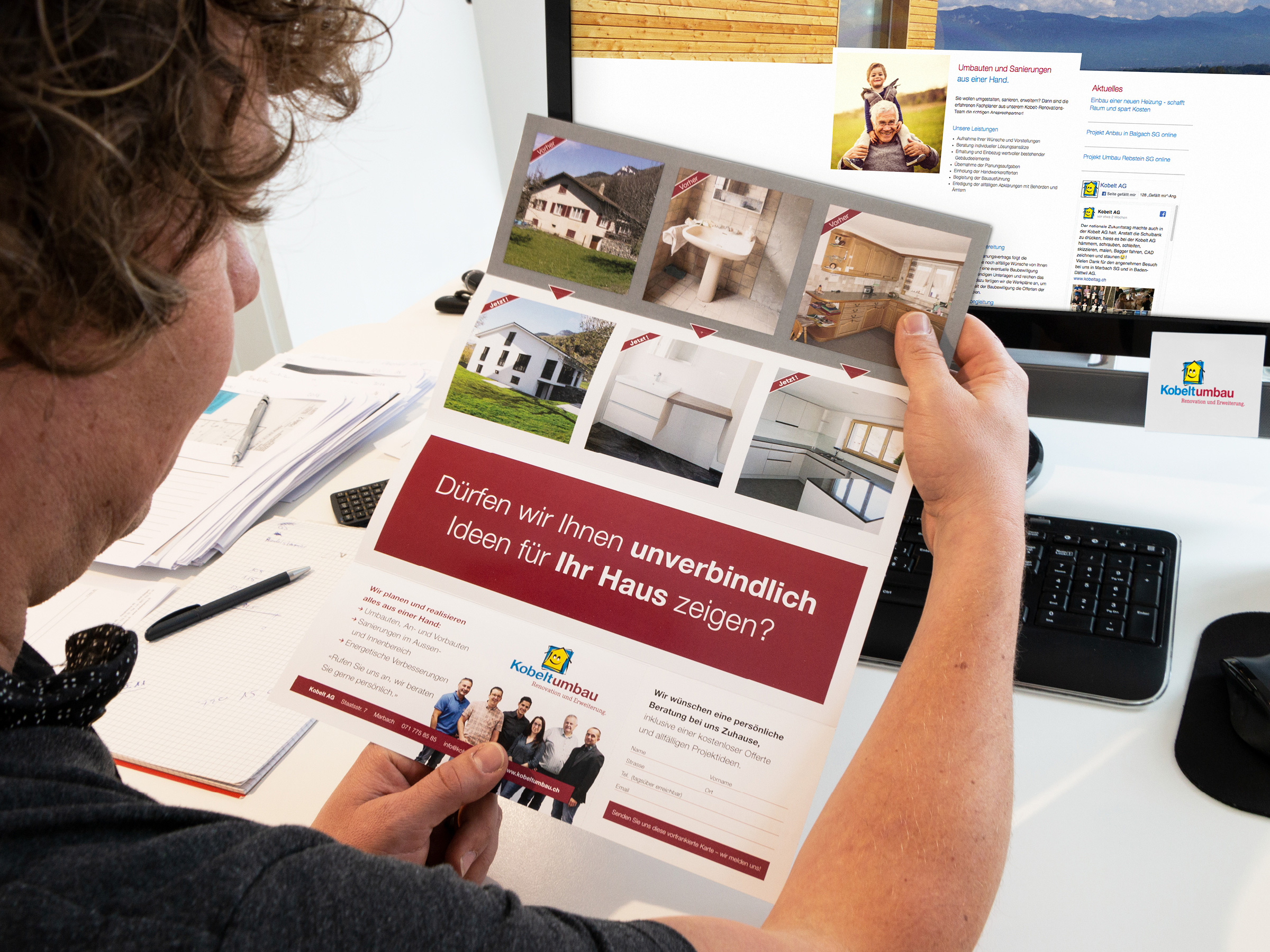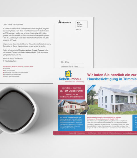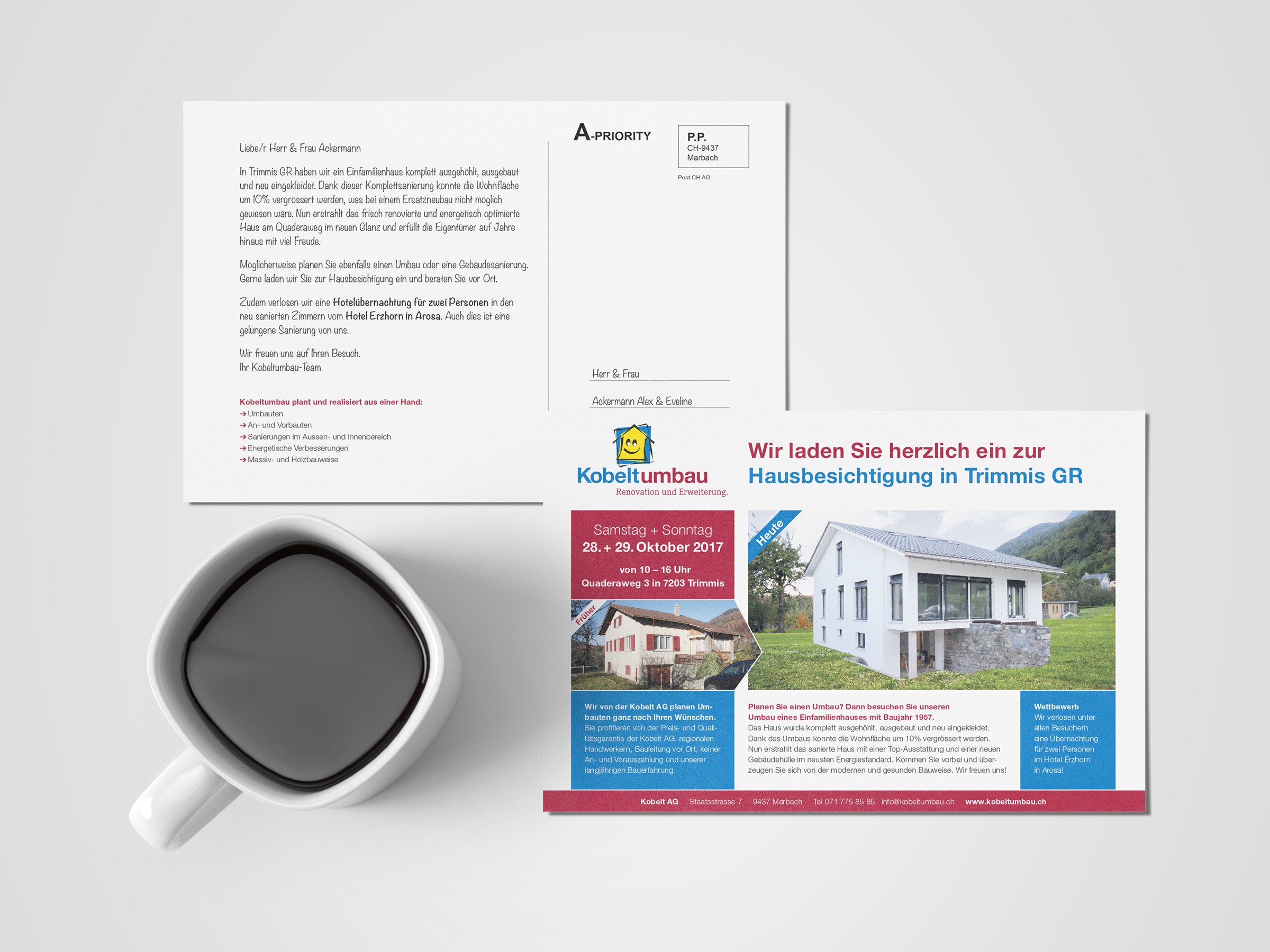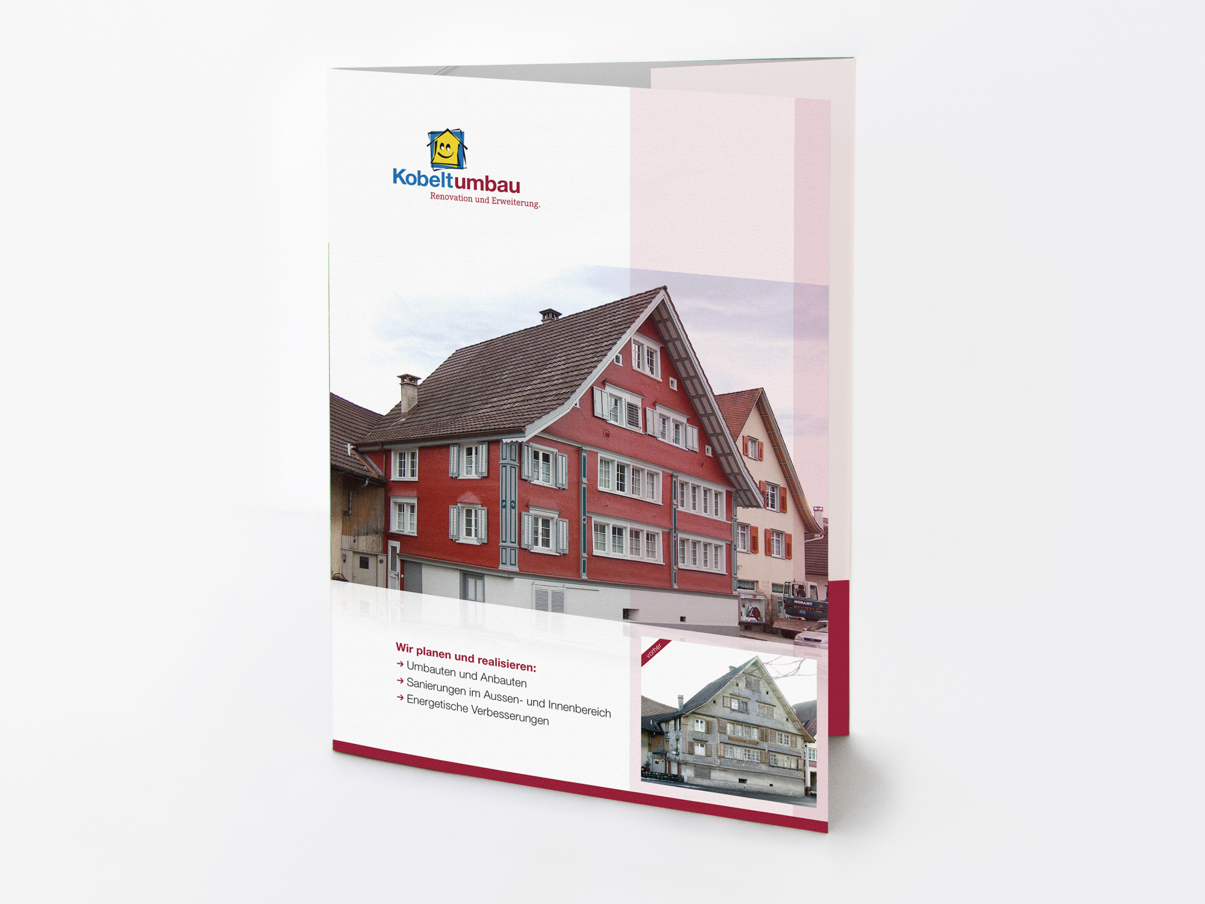 Kobelt Umbau Logo, personalisierte Mailing, Verkaufsmappe und Projektbuch. KundeKobelt UmbauJahr2019Arbeiten