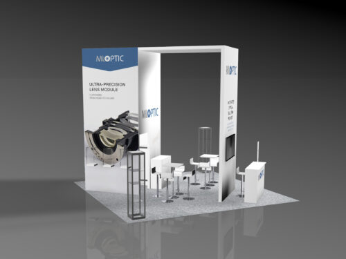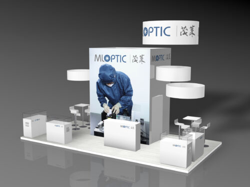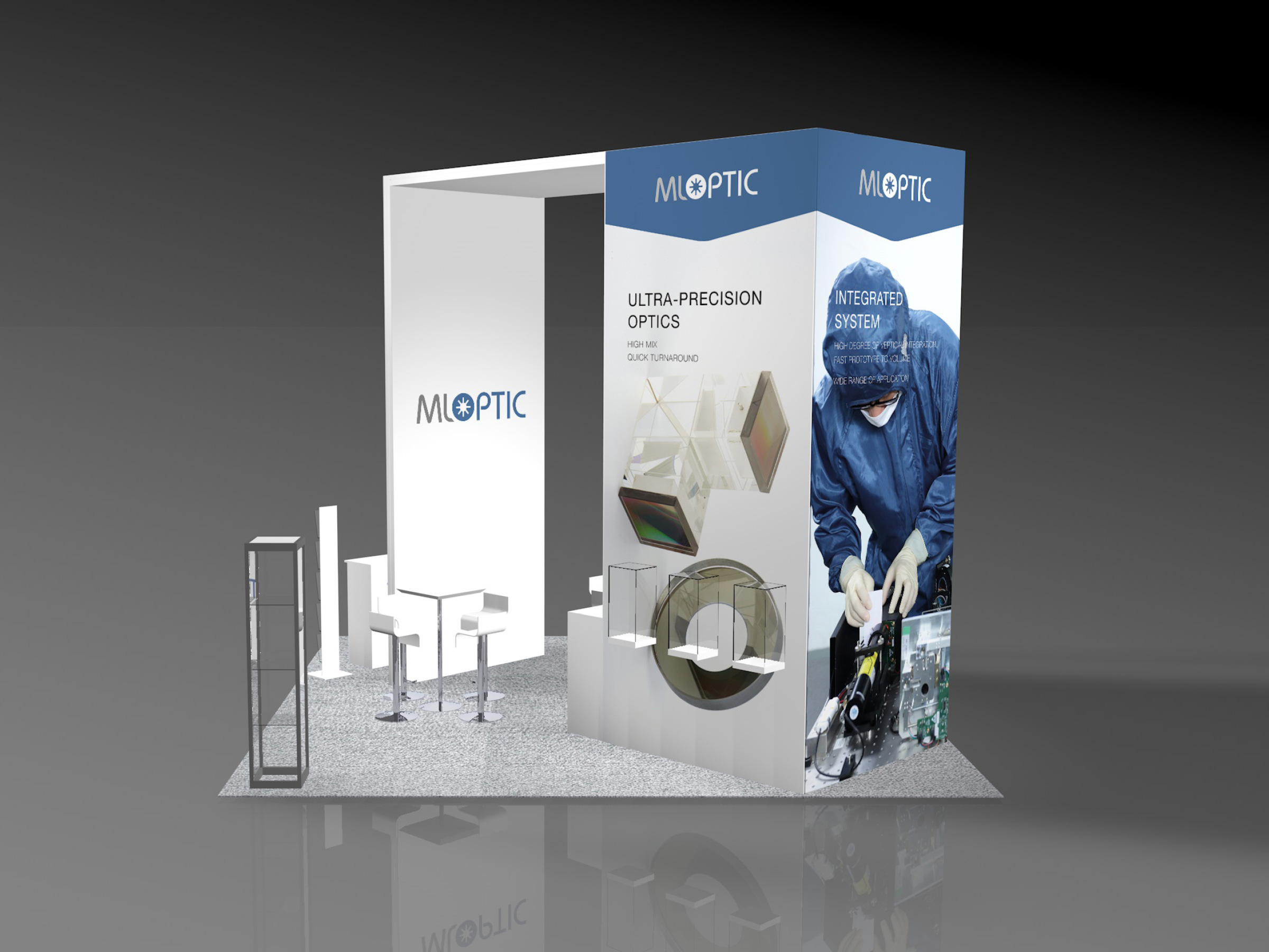 ML Optic Messestände, 3D-Visualisierungen, Beschriftungen und Bildbearbeitung. KundeML OpticJahr2019ArbeitenFoto, Video und 3D-Animation