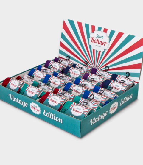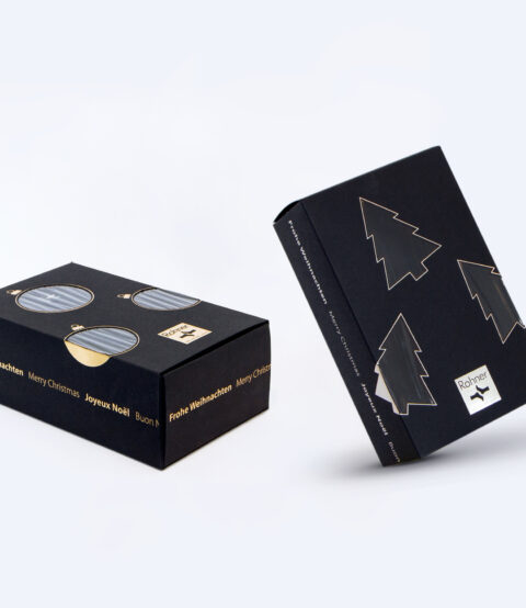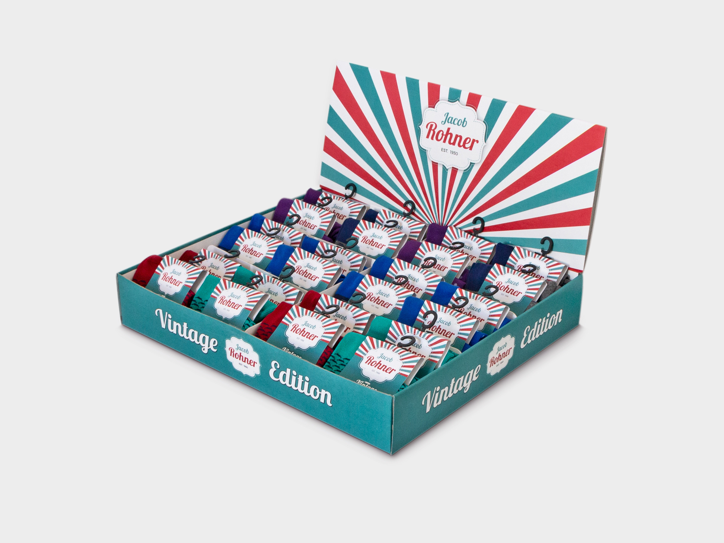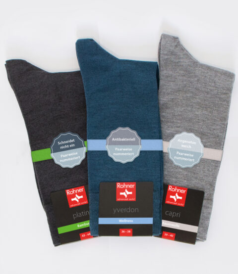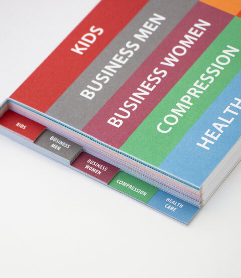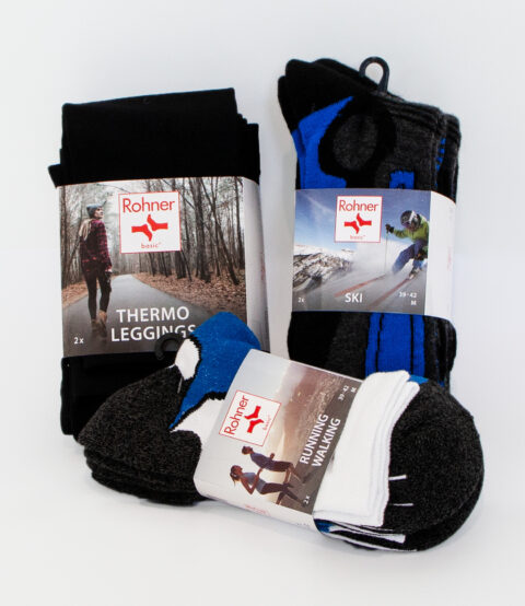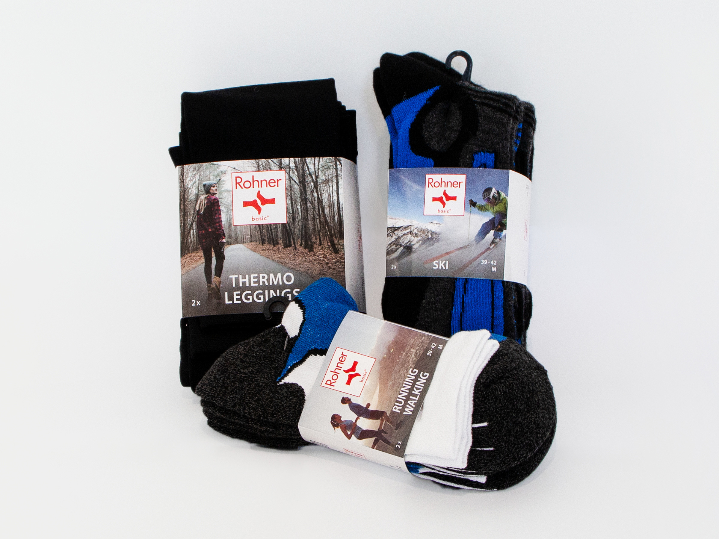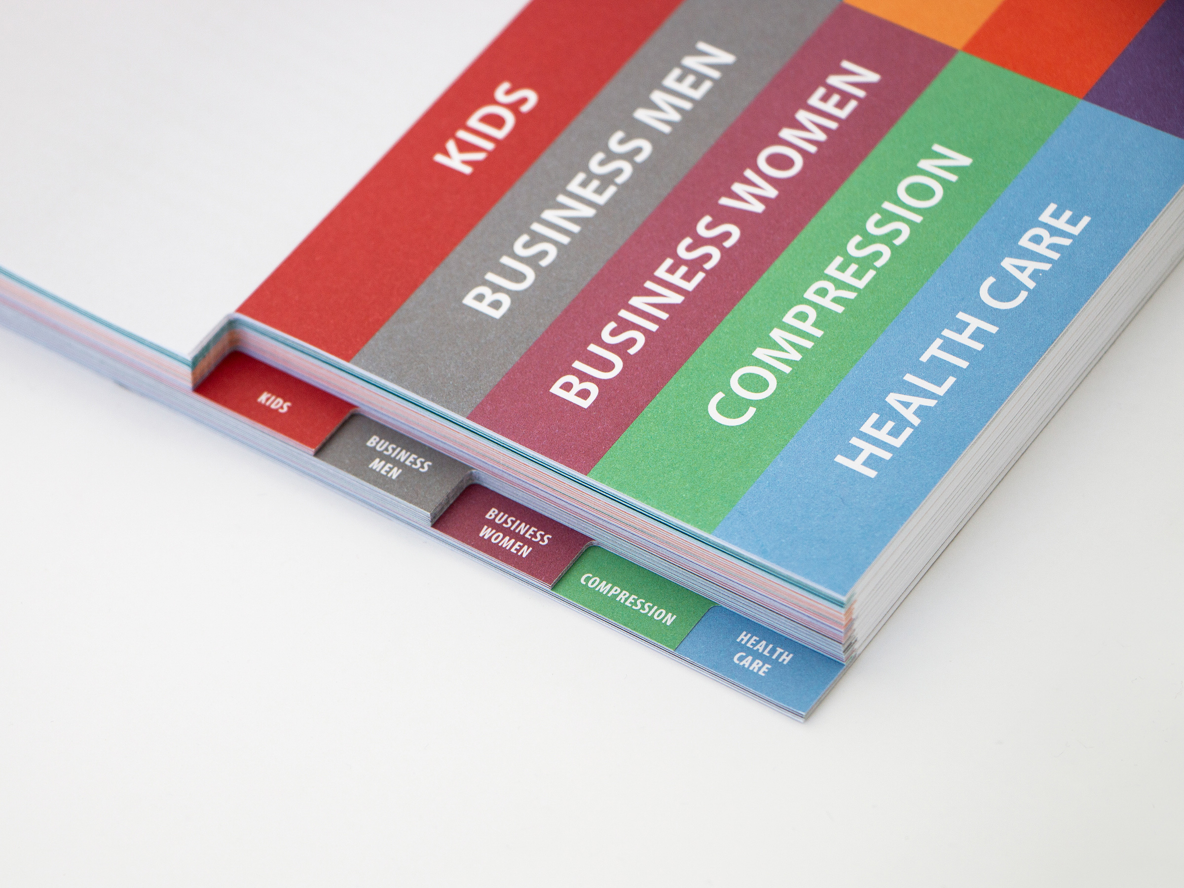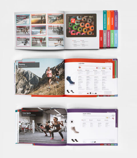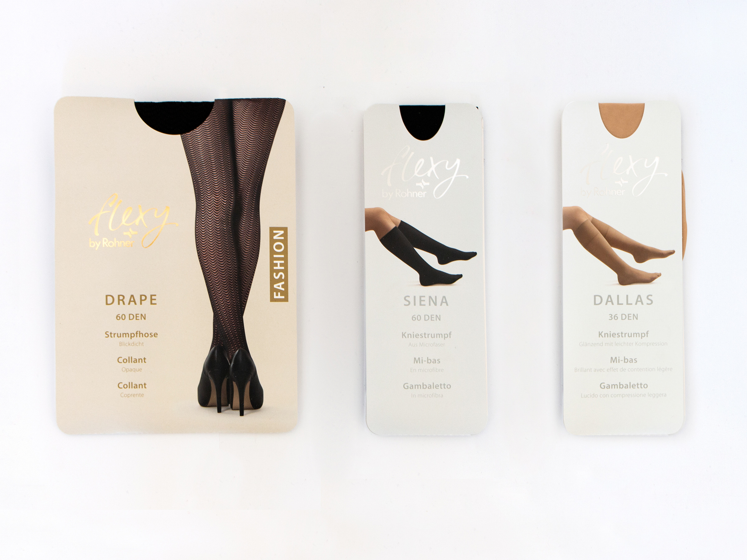 Rohner Socken Werbeauftritt, Messestand und Produktkatalog mit Register. Werbeauftritt diverser Marken, Produktverpackungen und Tragtaschen. KundeRohner SockenJahr2019ArbeitenDesign, Foto, Video und 3D-Animation