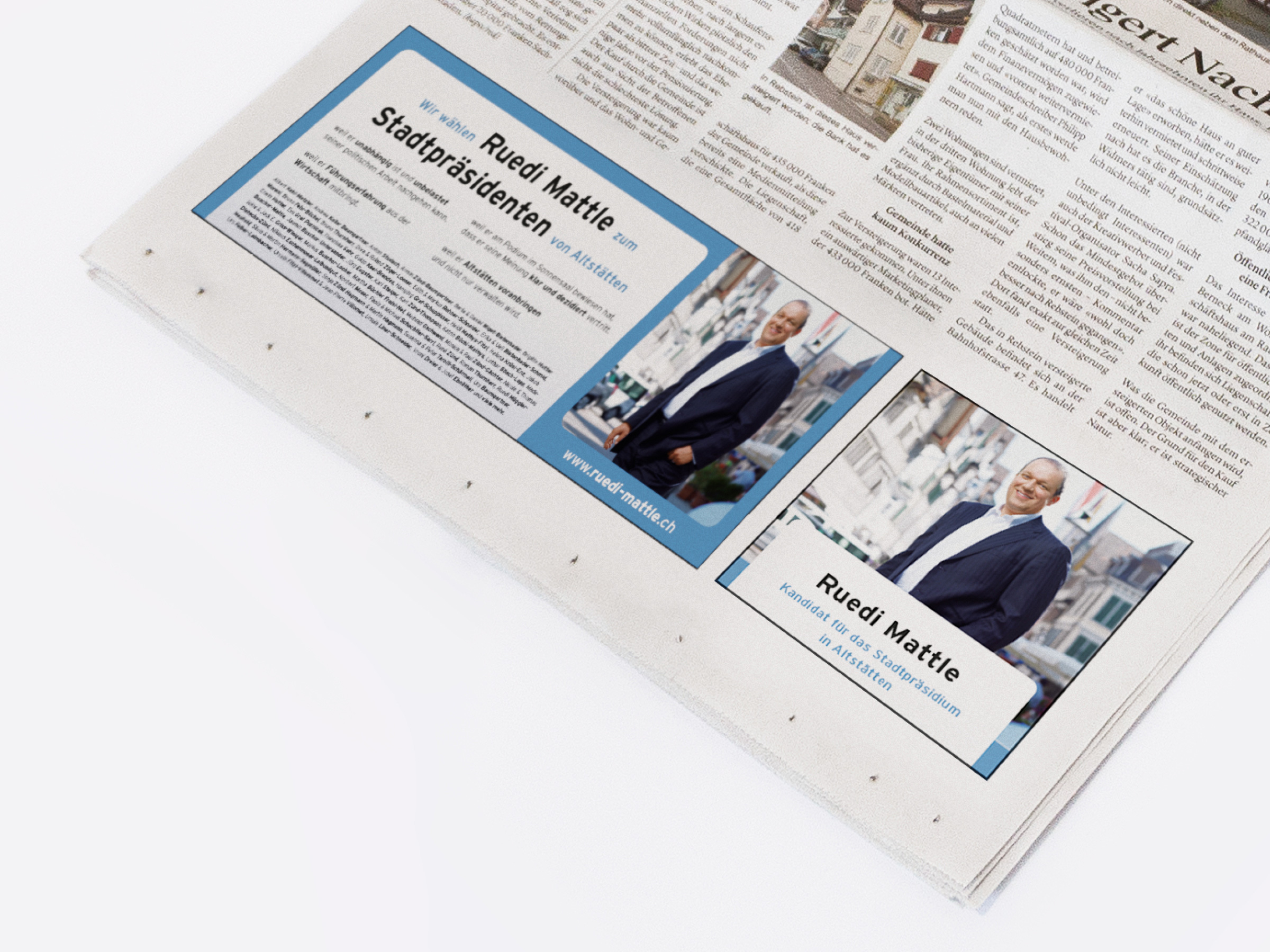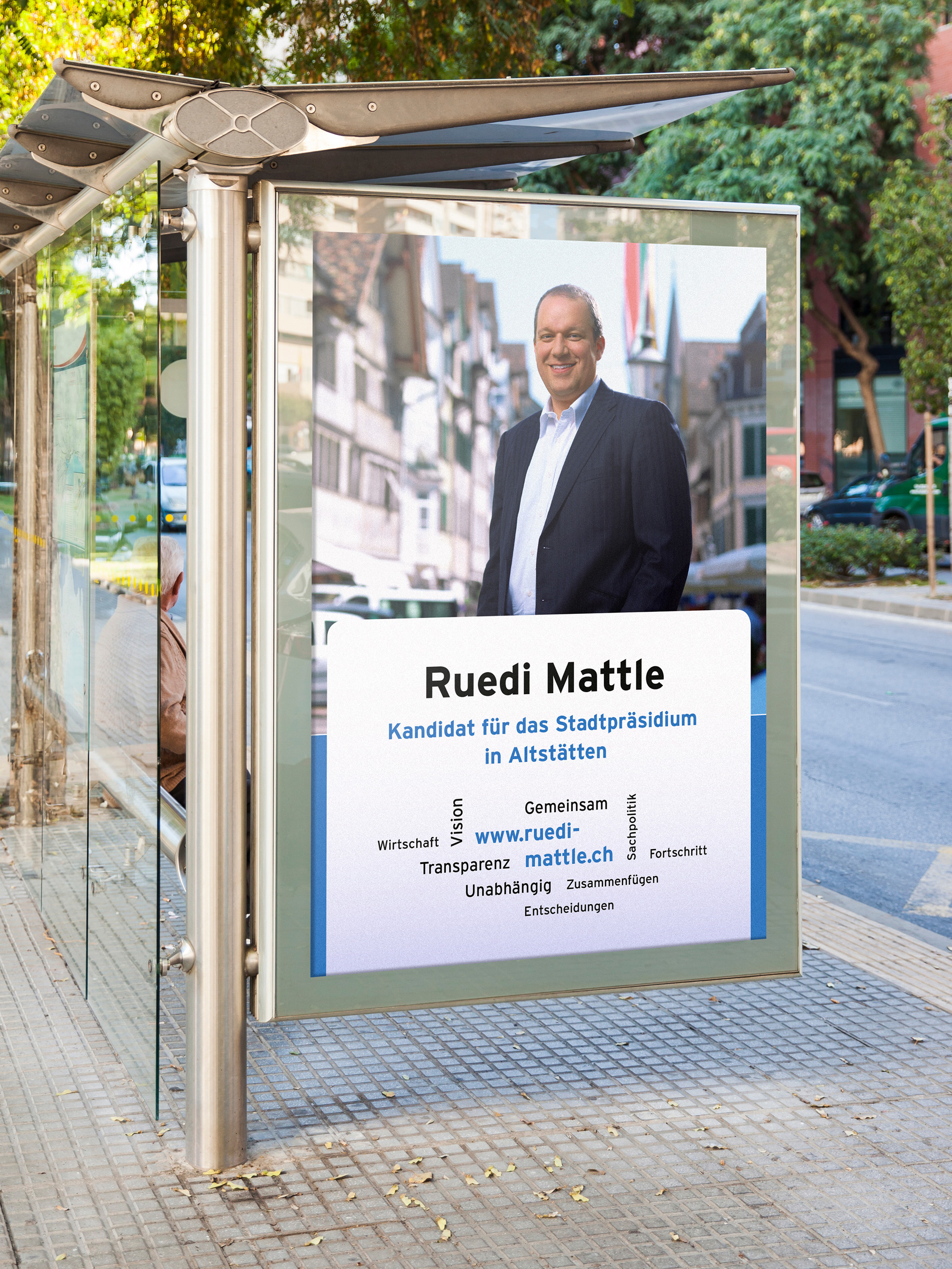 Wahlwerbung, Werbeauftritt, Mailing, Bierdeckel, Inserat- und Plakatkampagne.
