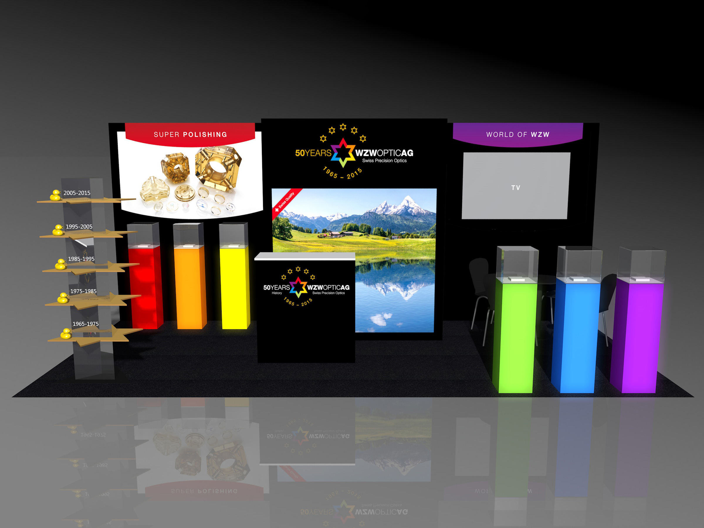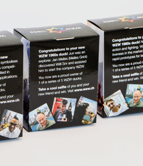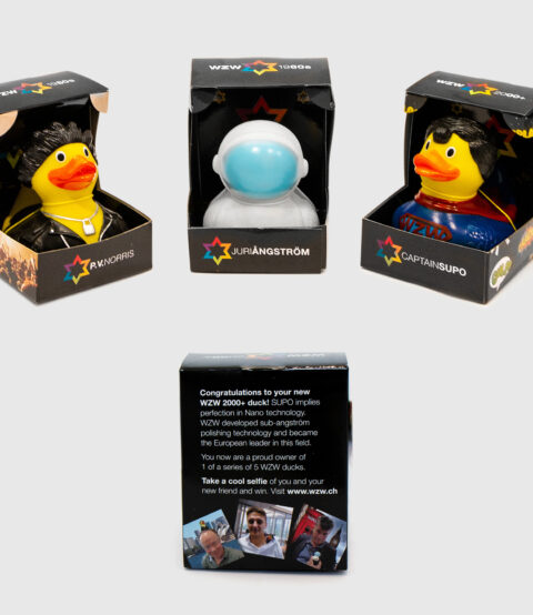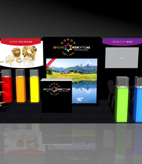 Logo, Messestand, Verpackungen, Give-Aways, Rollups und Broschüre.